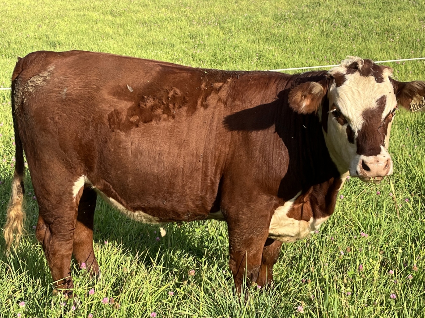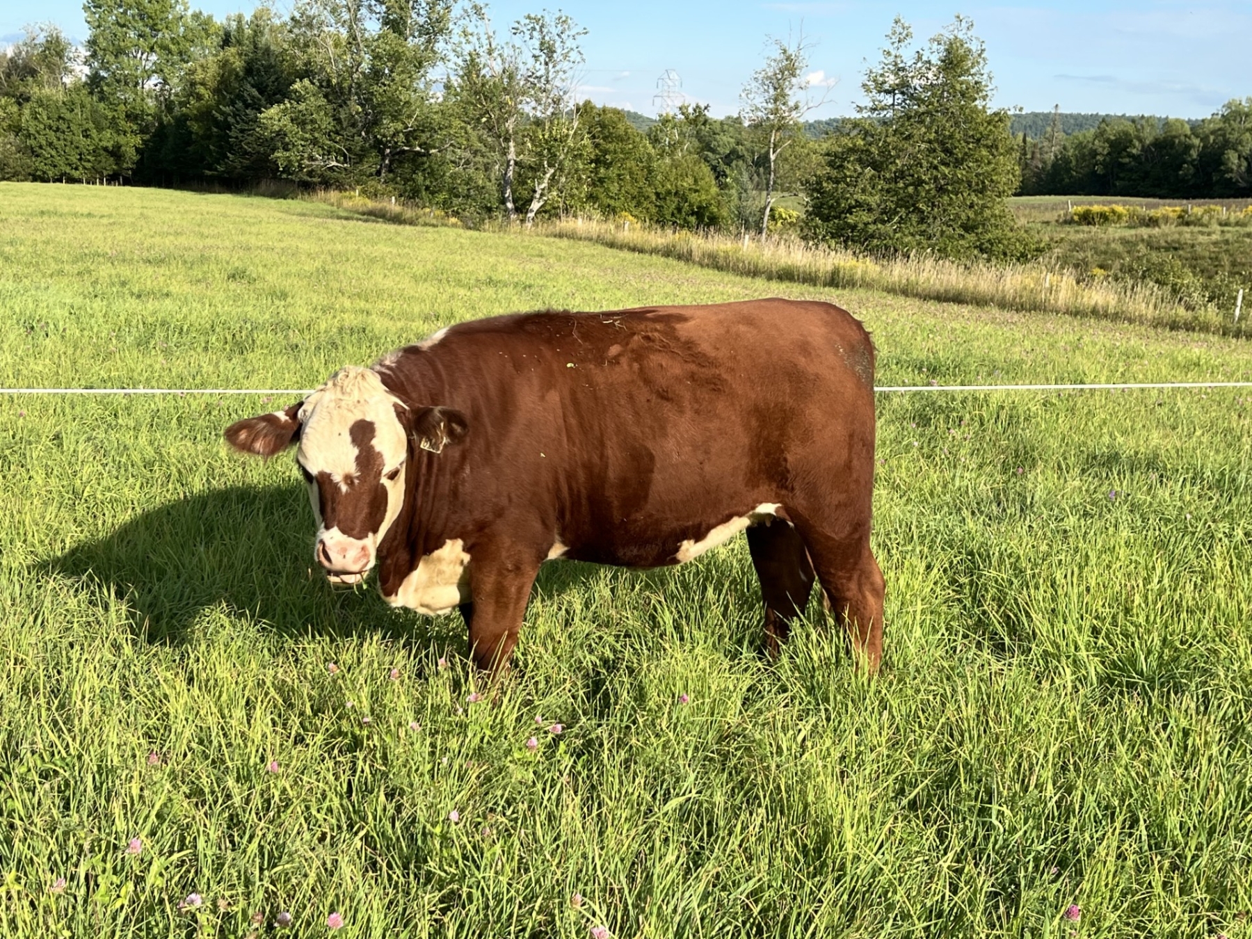 | Commentaires général: | Entreprise de production vache-veau qui se spécialise dans la vente de bœuf de qualité, nourri exclusivement à l'herbe et élevé sans hormone. La ferme possède un troupeau reproducteur de 22 vaches vacciné chaque année au Bovishield GOLD FP5 VL5 et au Maxiguard Pinkeye Bacterin. Les vêlages ont lieu entre mai et juillet de chaque année. Les veaux sont sevrés et préconditionnés depuis 7 mois. Le poids des veaux est une estimation au moment de la prise en charge. Généralement, les veaux sont conduits jusqu'à 18 mois avant la mise en marché. Confirmation d'aucune gestation. |