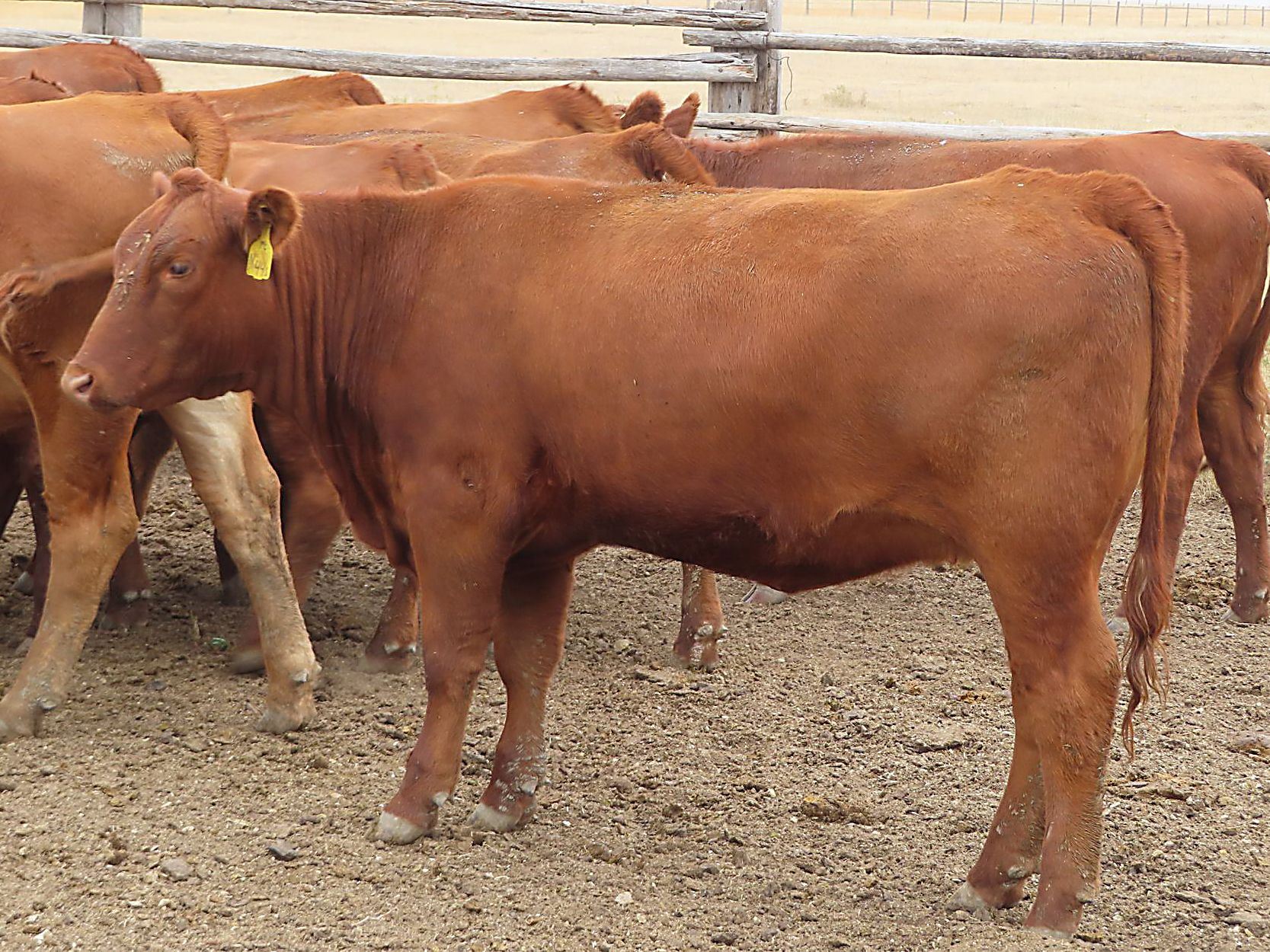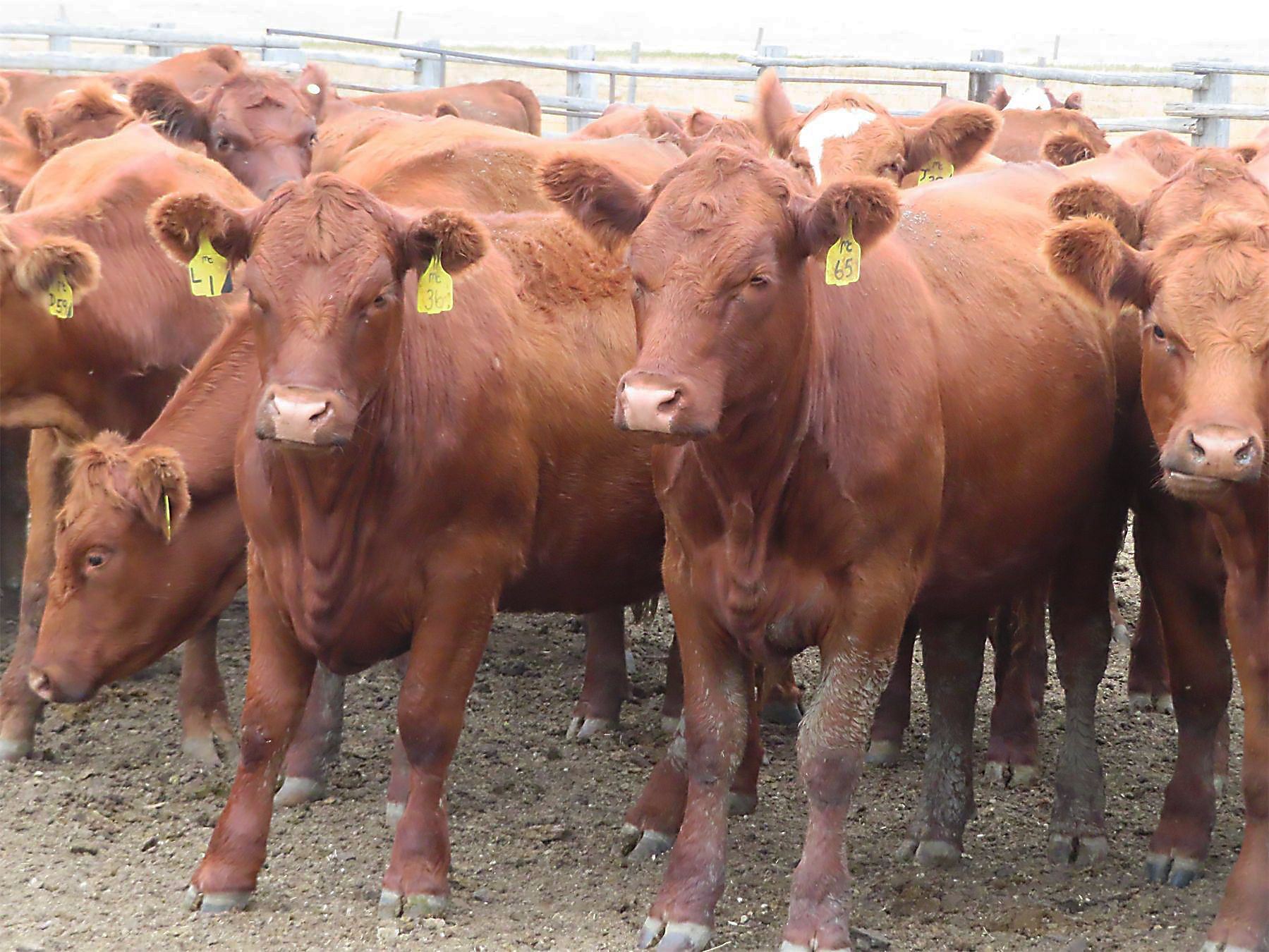 General Comments:Very good, healthy, quiet-disposition, long-bodied crossbreds with muscle, frame & bone that will gain, yield & grade! By 75% Labatte & MRL Simmental & 25% South View Ranch Red Angus bulls on big Simm x Red Angus cows. Mainly lighter sort from over 200 reputation, home-raised heifers. 6 bigger heifers preg tested open from replacements and 96 run open, no bulls around them, none sold previously. 5 nipped ears, one short tail, little uneven but will feed together. Makes two tandem loads, or fill two tridems with the steers. Take a look!